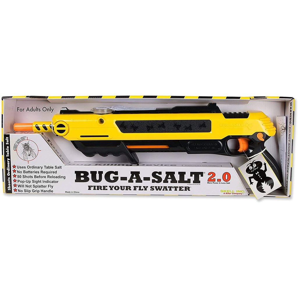 Bug A Salt The Original Salt Gun Bug A Salt Bug A Salt from cdn.shopify.com A surefire fun way to enjoy a disgusting task. It's even worse if you can't kill it. Buy the best and latest bug a salt 3 on banggood.com offer the quality bug a salt 3 on sale with worldwide free shipping. Check out the salt gun that blasts flies without any mess, and they only cost £35. Each shot sends a pinch of salt towards the targeted fly. And they recommend using ordinary table salt. Do not shoot at people or animals. The plastic gun is designed to spray up to 80 discharges of salt, which forms a conical spread pattern.