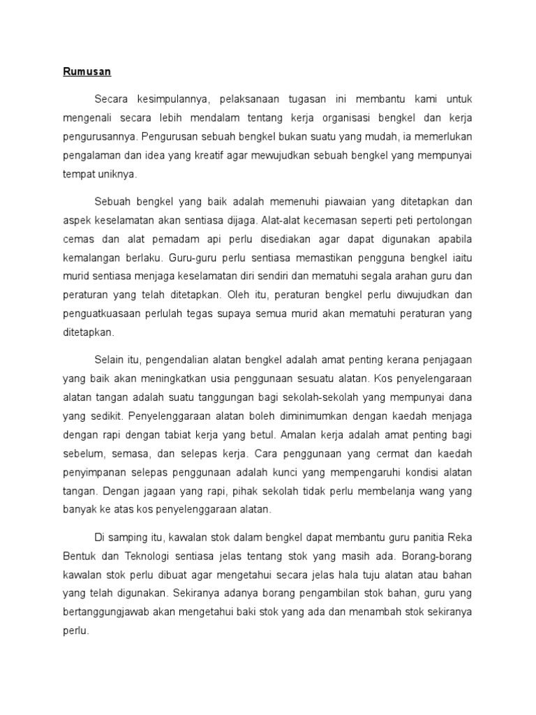 Related : Contoh Laporan Keselamatan Di Bengkel : Bengkel mestilah mempunyai susun atur yang baik bagi membolehkan kerja dijalankan dengan baik dan lancar..