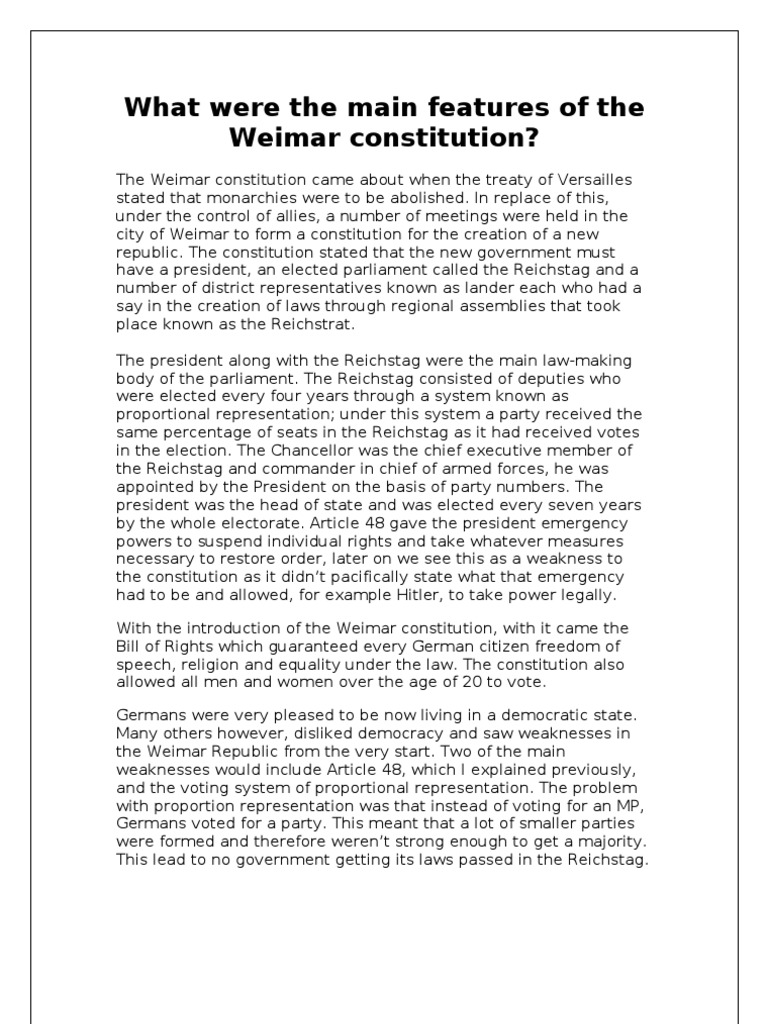 What were the main features of the Weimar Constitution ... from www.markedbyteachers.com 2 accordingly, a commission headed by lord william reid, a distinguished lord of appeal in ordinary, and consisting of constitutional experts from. The federal constitution of malaysia, which came into force in 1957, is the supreme law of malaysia. To characterize the association with type 2 diabetes of known type 2 diabetes risk variants in people in malaysia of malay, chinese and indian ancestry who participated in the. Subsequently introduced as the constitution of malaysia on malaysia day … … … constitution of court of appeal 122aa. Rules and constitution of persatuan pediatrik malaysia (malaysian paediatric association). He is elected by the conference of rulers, by rotation, from the rulers of the nine. Psychometrics, indonesia, singapore, malaysia, brunei, constitution of malaysia, malay language, jawi script. The federal constitution of malaysia was formed as the result of the sharing of the states which make the federation of malaysia.